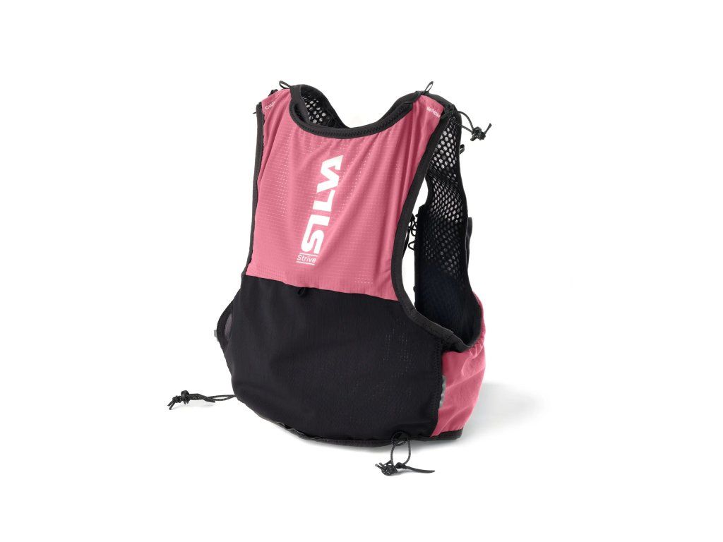 Vesta je z flexibilního ripstop nylonu s prodyšnou 3D síťovinou. Přiléhá těsně ve čtyřech velikostech. Vpředu dvě lahvové kapsy s nastavitelnými pásky, dvě velké otevřené kapsy na gely nebo rukavice a dvě zipové kapsy — jedna s háčkem na klíče. Vzadu prostorná kapsa na vodní vak s vývodem hadičky na ramenou, zipová kapsa a síťová kapsa pro rychlý přístup. Elastická bateriová kapsa s kabelovým vývodem umožňuje provoz s čelovkou. Čtyři nastavitelné pásky drží hole, vesta je kompatibilní se systémem Strive Quiver. Reflexní prvky, integrovaná píšťalka. Lze prát ručně.